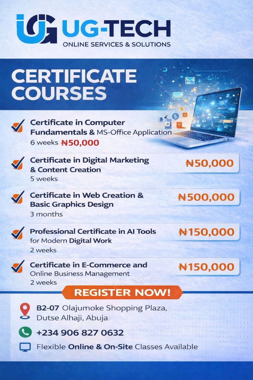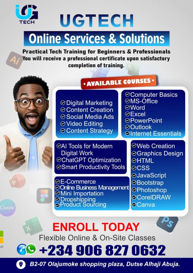 UGTECH Online Services & Solutions is your trusted partner for hands-on, practical tech training designed to prepare you for real-world opportunities โ not just theory.